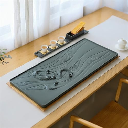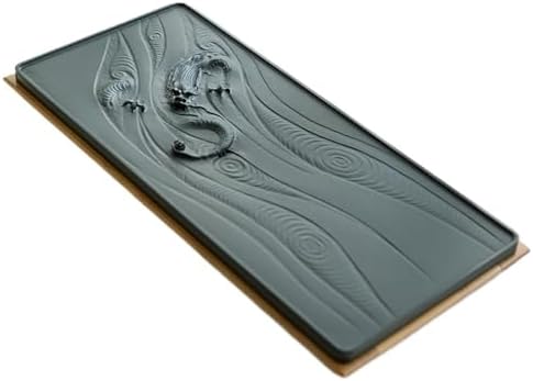 Taca 45 x 30 cm z hebanu z wstawką kamienia Tian Luo. Rzeźba morskiego dna w 3D. Kamień chłodzi herbatę o 2°C. Heban sezonowany 36 miesięcy. Czyszczenie olejem lnianym co 5 miesięcy. Waga 4,2 kg z podstawką. Dedykowana do ceremonii na świeżym powietrzu. Symbolizuje obfitość w tradycji chińskiej. Ręczne rzeźbienie.